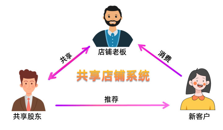 共享店鋪:無人流要求,租金低,眾籌開店,投入低、0風險,盈利點豐富,口碑分享,關系分享,全方位引流,共享股東自動引流到店。